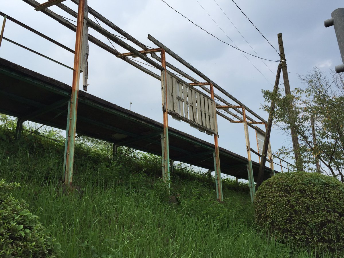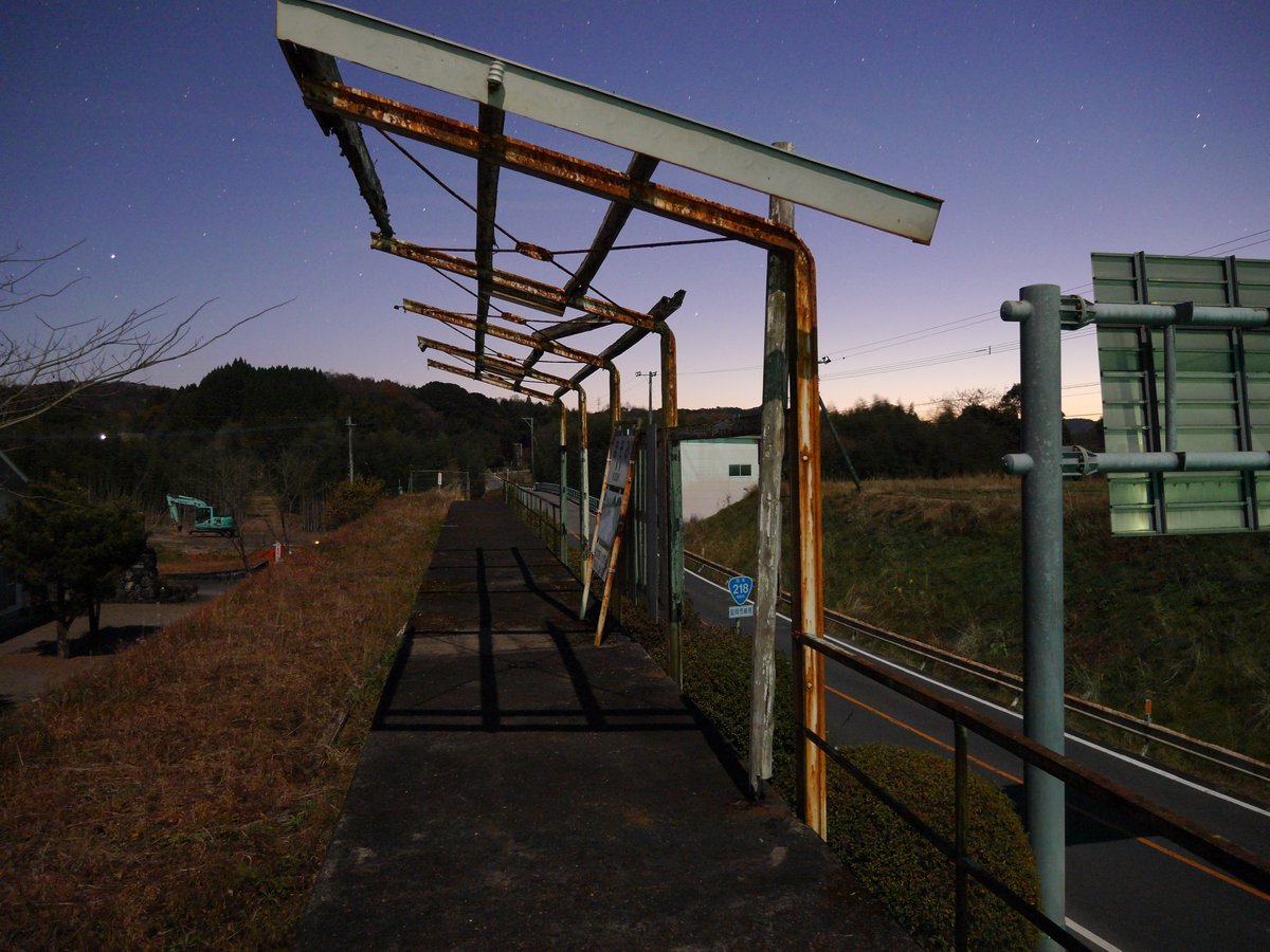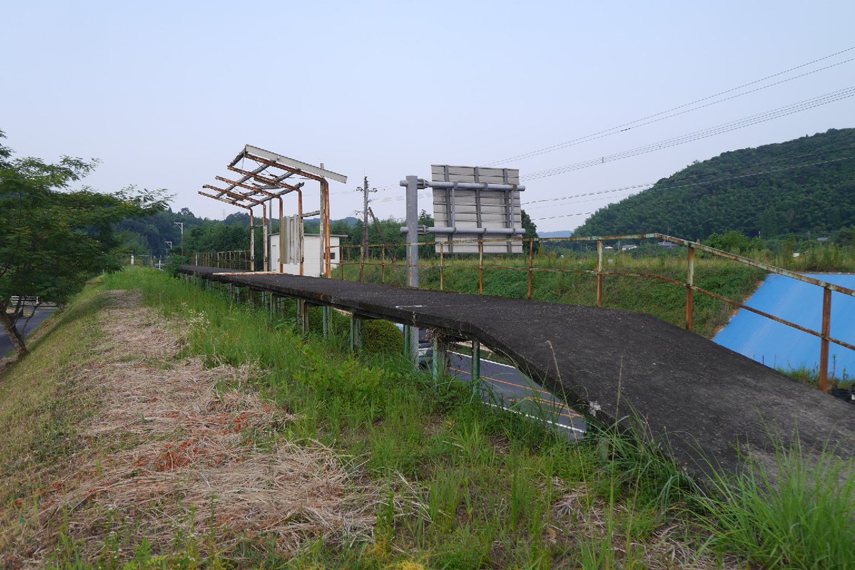国道嵩上工事で線路のあった位置まで道路を上げたので、プラットホームは潰されて消滅