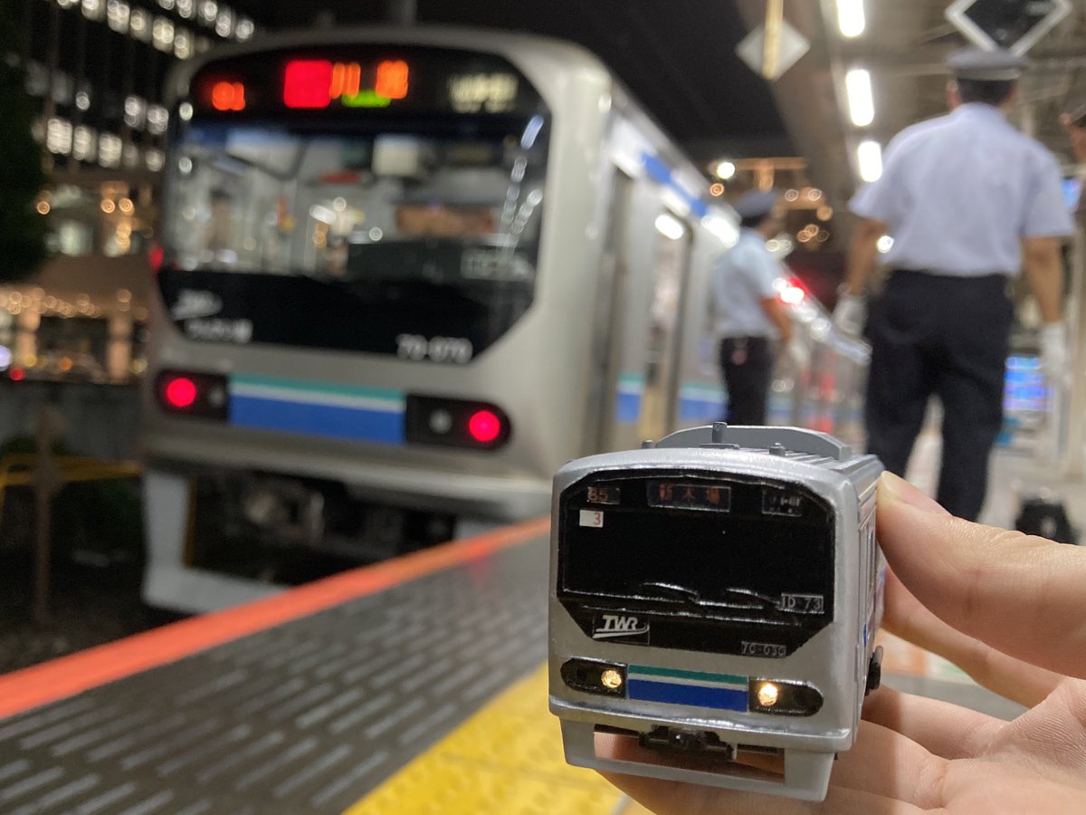 E231系と、その少し後ろに臨海線から譲渡された70-000形が停まっています pic.twitter.com/tSvxeirpnR