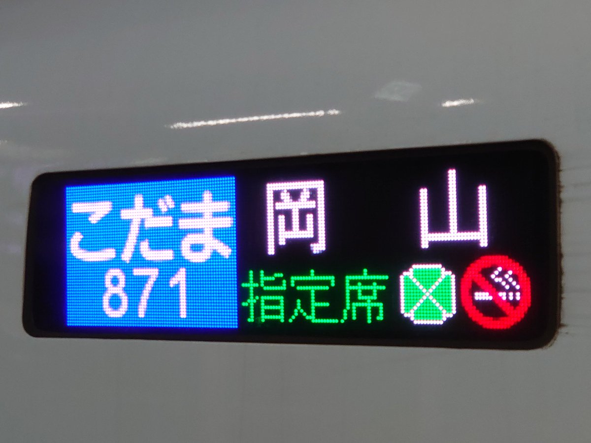 871A[こだま871 | 岡山] 新大阪20:53→岡山21:54 766-7018(S18) pic.twitter.com/CSXB2UHGNK 2022-04-05 20:56:00