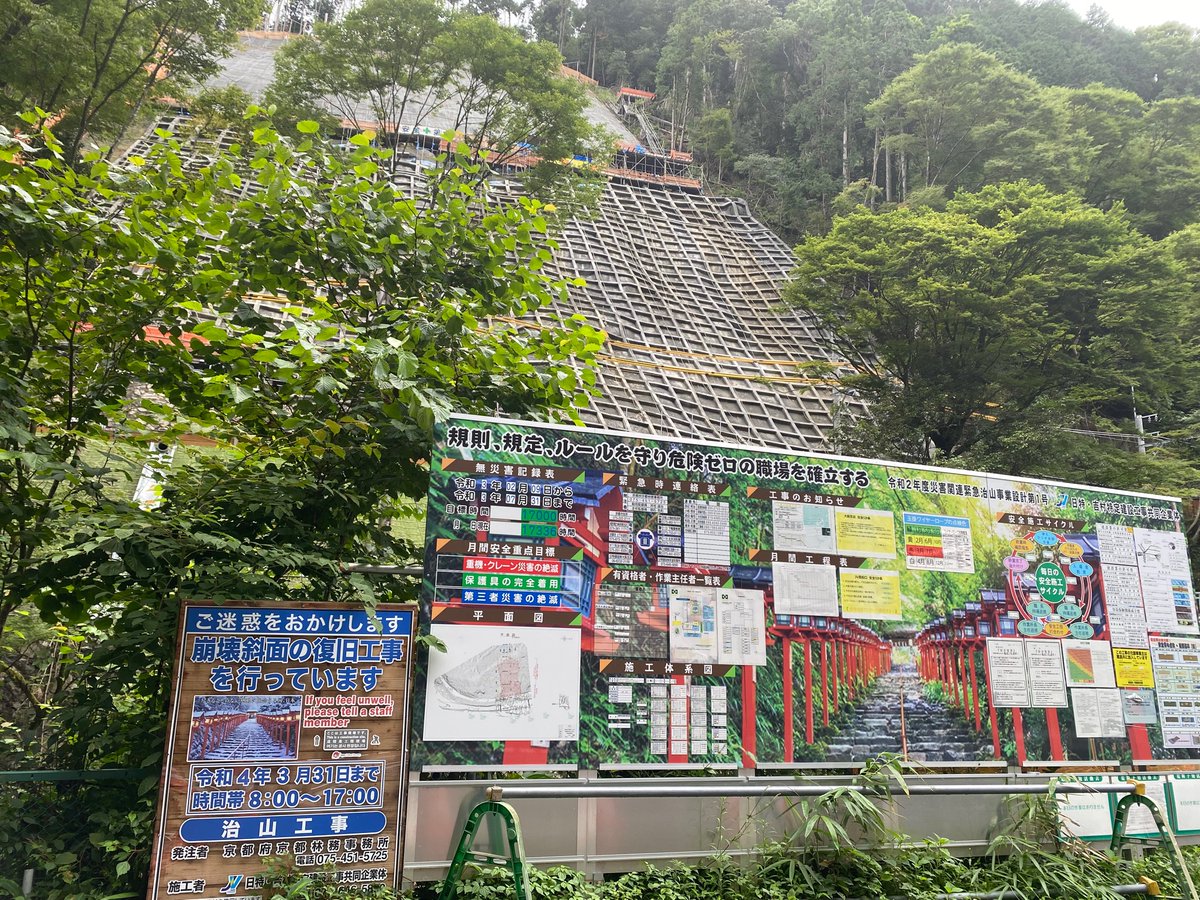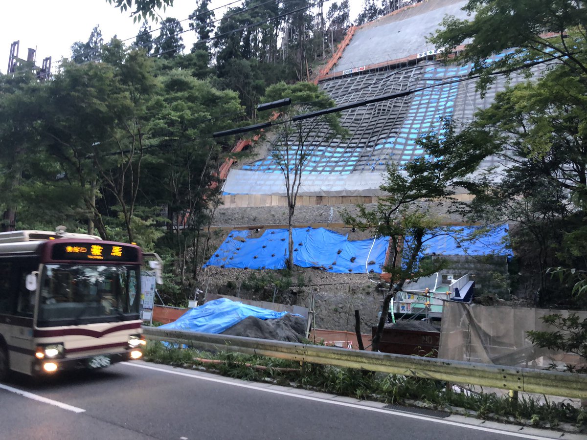 #京都バス #叡山電鉄 貴船口駅の付近の倒木状況です。 こちらも・・一般車ならかろうじて走れる幅しか空いてません。 また、貴船神社入口の付近より先は軽自動車しか通れない程の被害なようです。。 pic.twitter.com/rNZdcjbIMB 2018-09-05 15:42:00