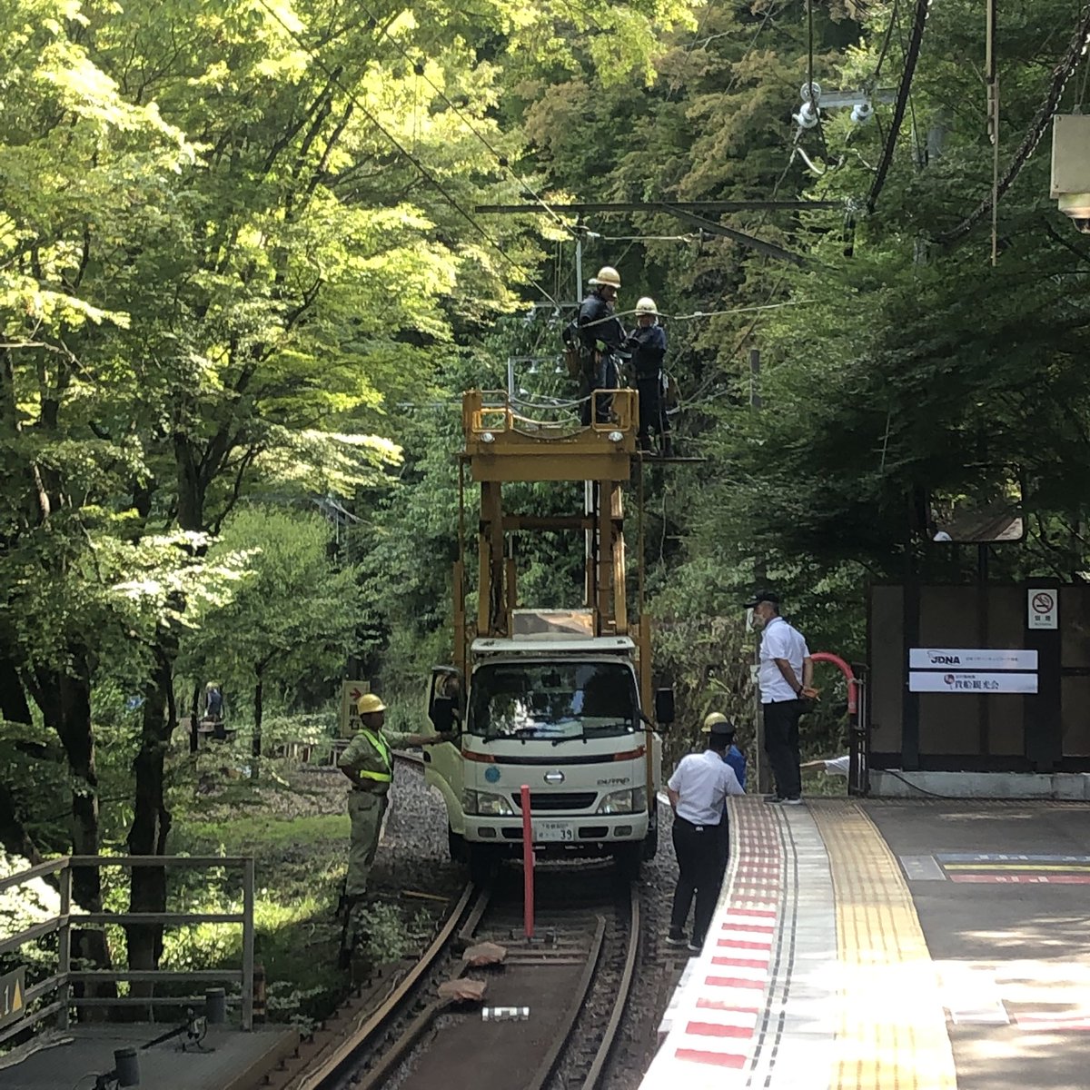 二ノ瀬~鞍馬間の一つの閉塞を区切って運転しているようで、指導者の腕章を巻いた人がタブレット代わりにその区間を行き来する指導式閉塞で運転していました pic.twitter.com/igzzxg8Fxs