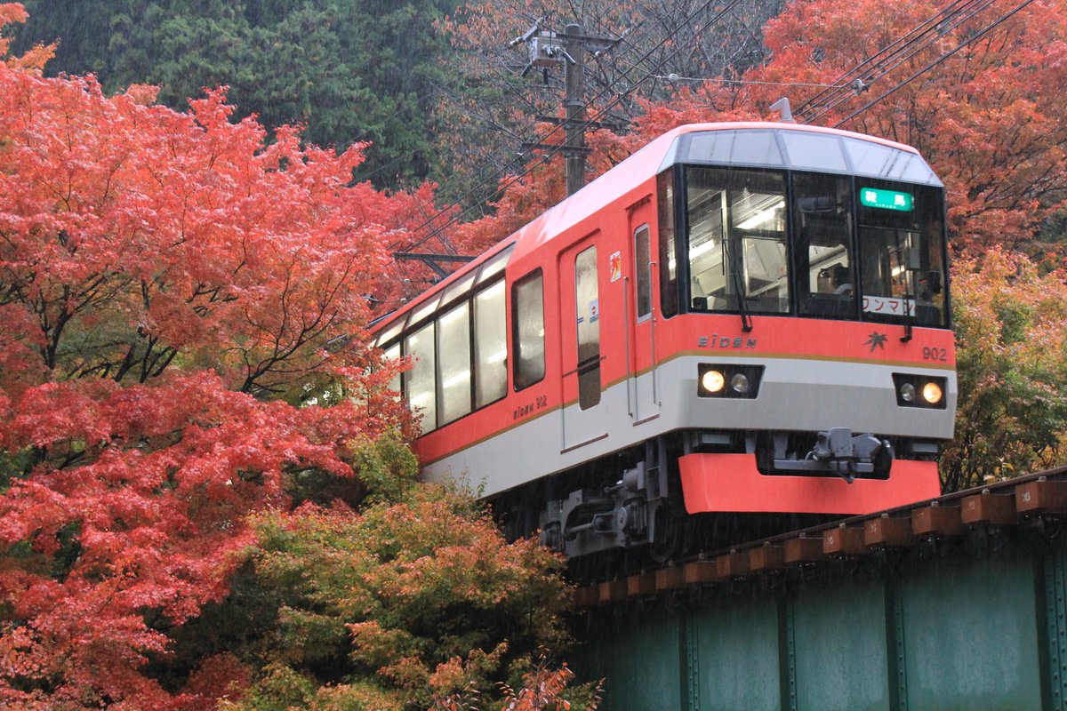 鞍馬線はこれからの紅葉シーズン、市原駅~二ノ瀬駅間の「もみじのトンネル」や貴船神社など紅葉の名所がたくさんあります。ぜひ叡山電車でおでかけください! pic.twitter.com/FFQ9lTryE3