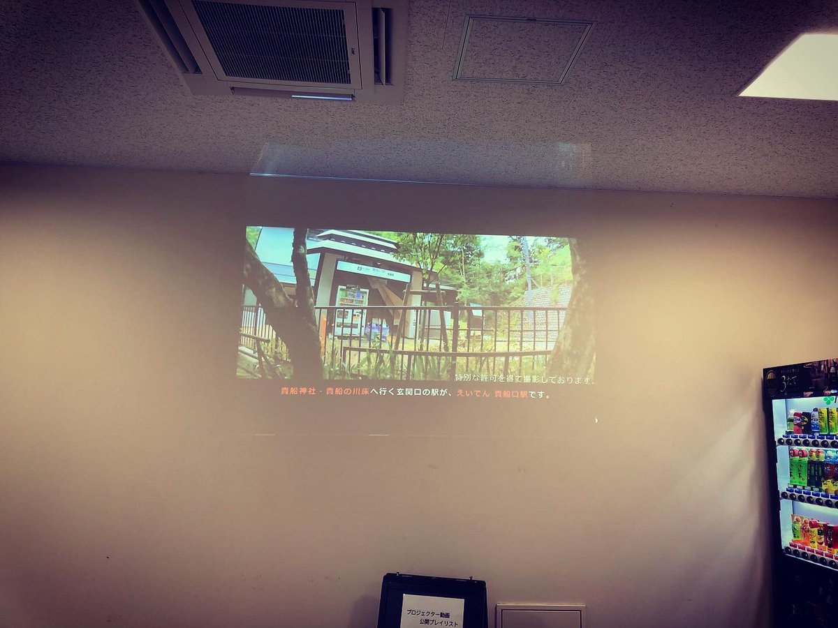先日駅ドローンレース開催のえいでん貴船口駅に紅葉を見に行って来ました。なんと駅で僕の映像がプロジェクターで流れてました!