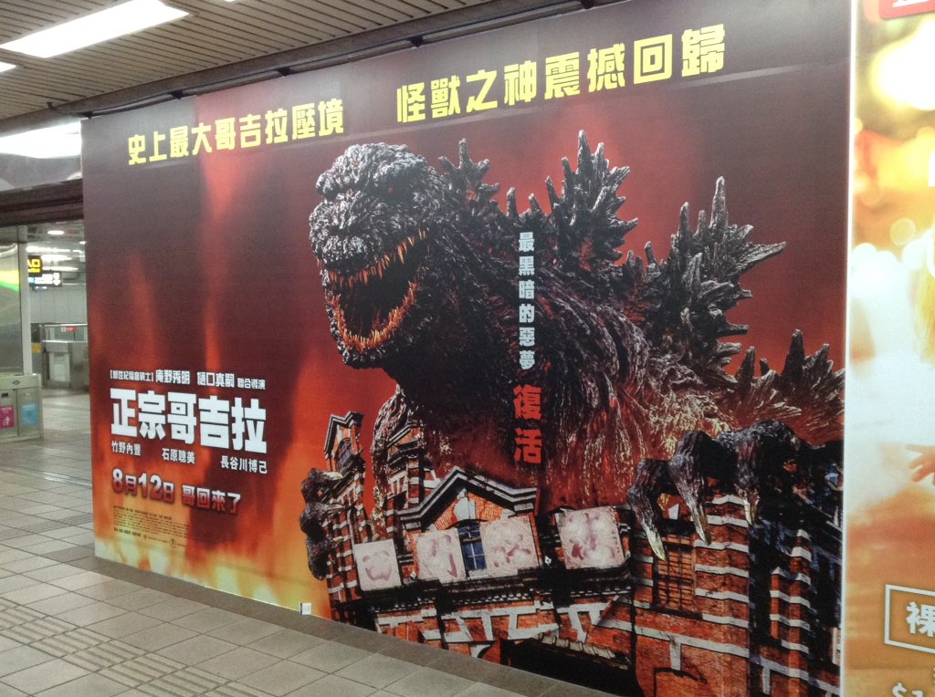 忠孝新生駅のシンゴジラの広告。破壊されてるのは台北・西門町にある映画館。 pic.twitter.com/7M8mY5wLkW 2016-08-06 08:24:00