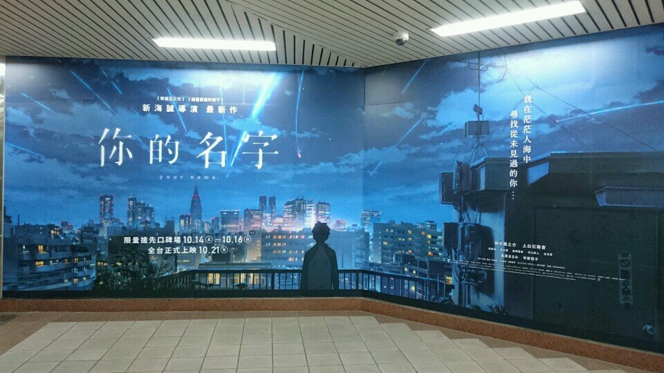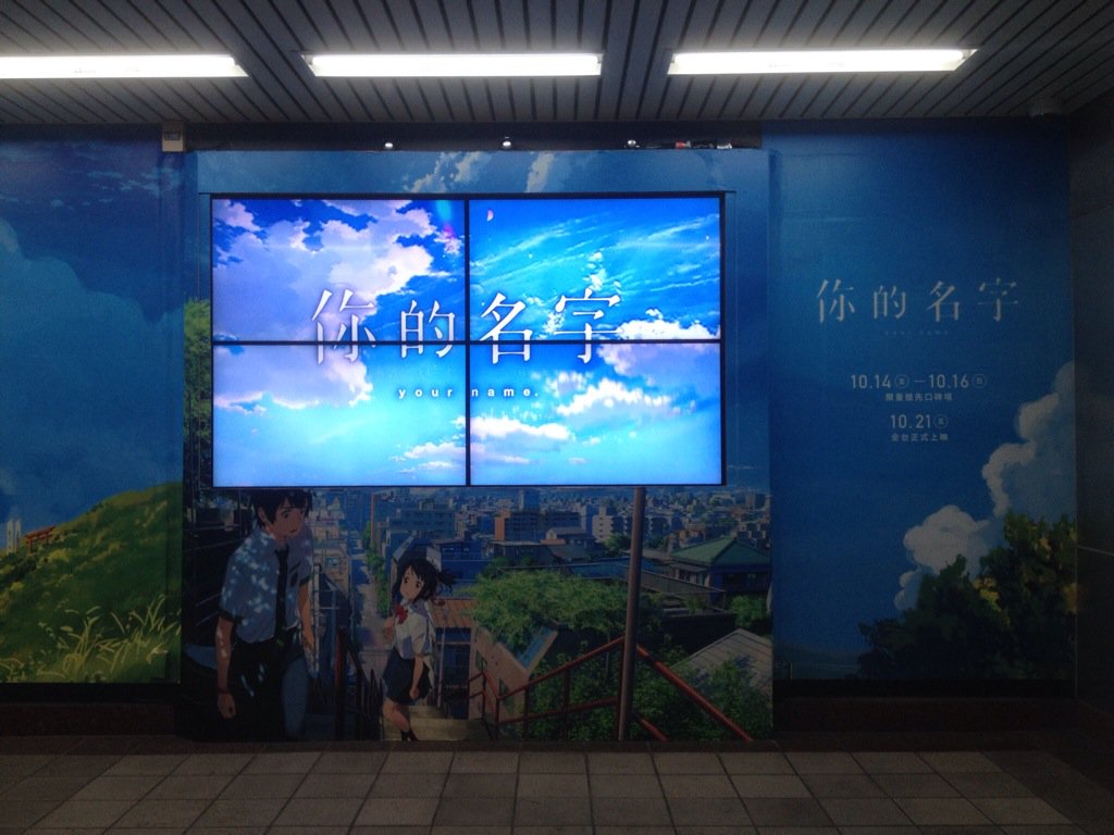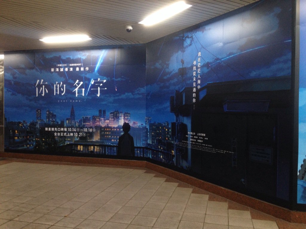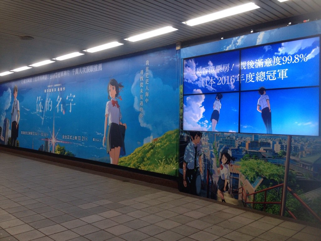 台北MRT 忠孝新生駅一番出口にある映画「君の名前は」の巨大広告見てきたー!
