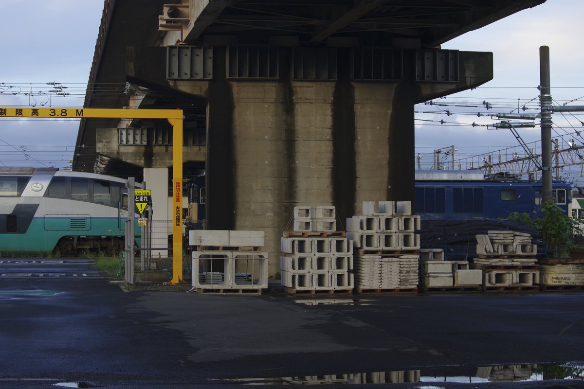 2013年4月28日15時21分。2020 年に解体されることになる「第一田町ビル」(東京都港区芝5-33-8)の真裏を走行中の「251 系」電車を、植物が絡まる金網の手前側より撮影しました。 -