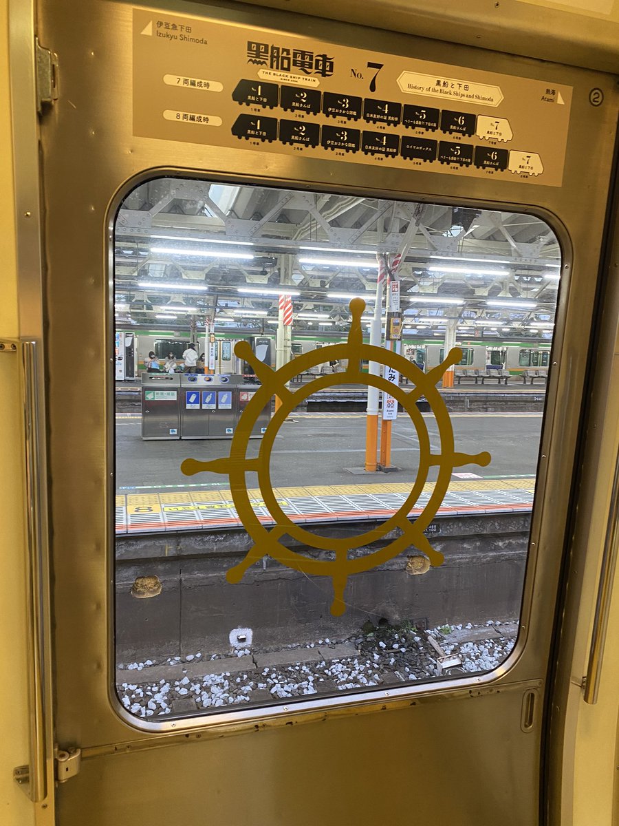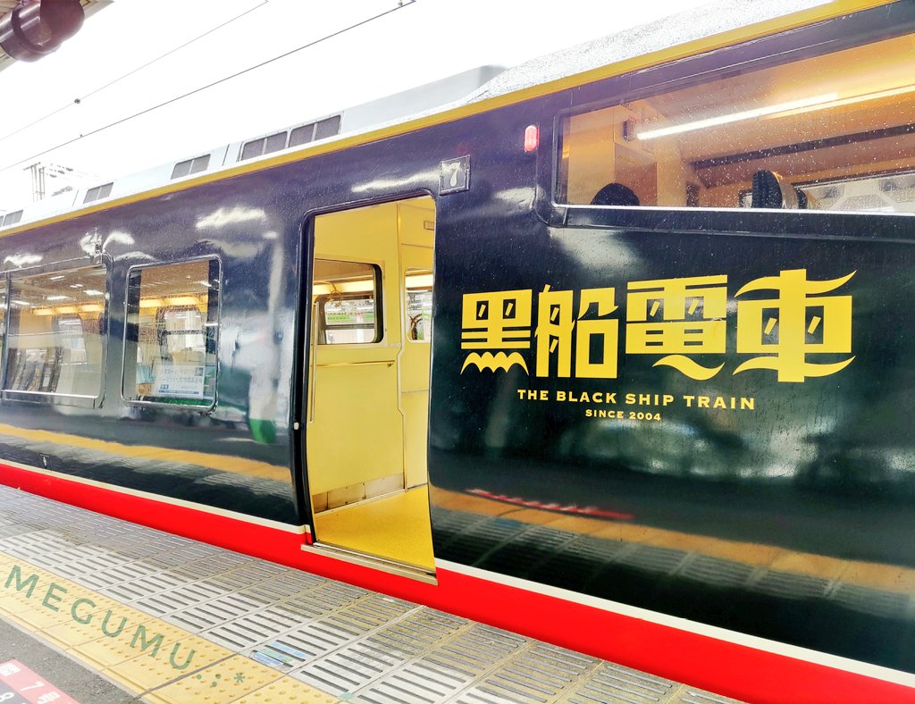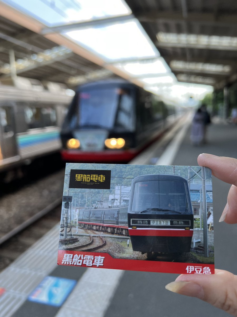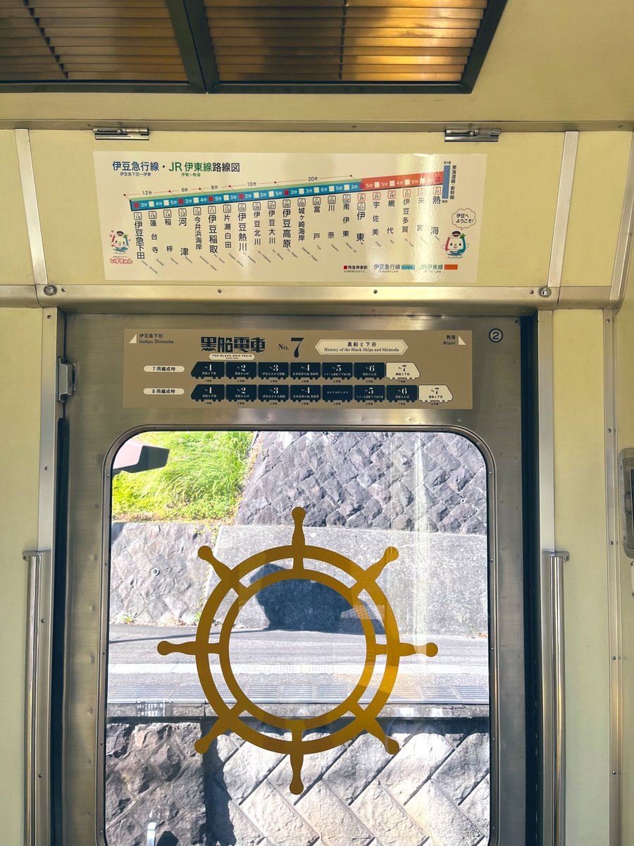 下田開港150周年を記念して運転が始まったリゾートトレインです。下田に来航した黒船に見立ててブラックに塗装した電車です。車内には黒船の来航など外国船が江戸湾や伊豆周辺に出没した幕末の歴史と下田の状況を紹介する史料なども展示され走るミュージアムにもなっています。 pic.twitter.com/mvtn57q9UB