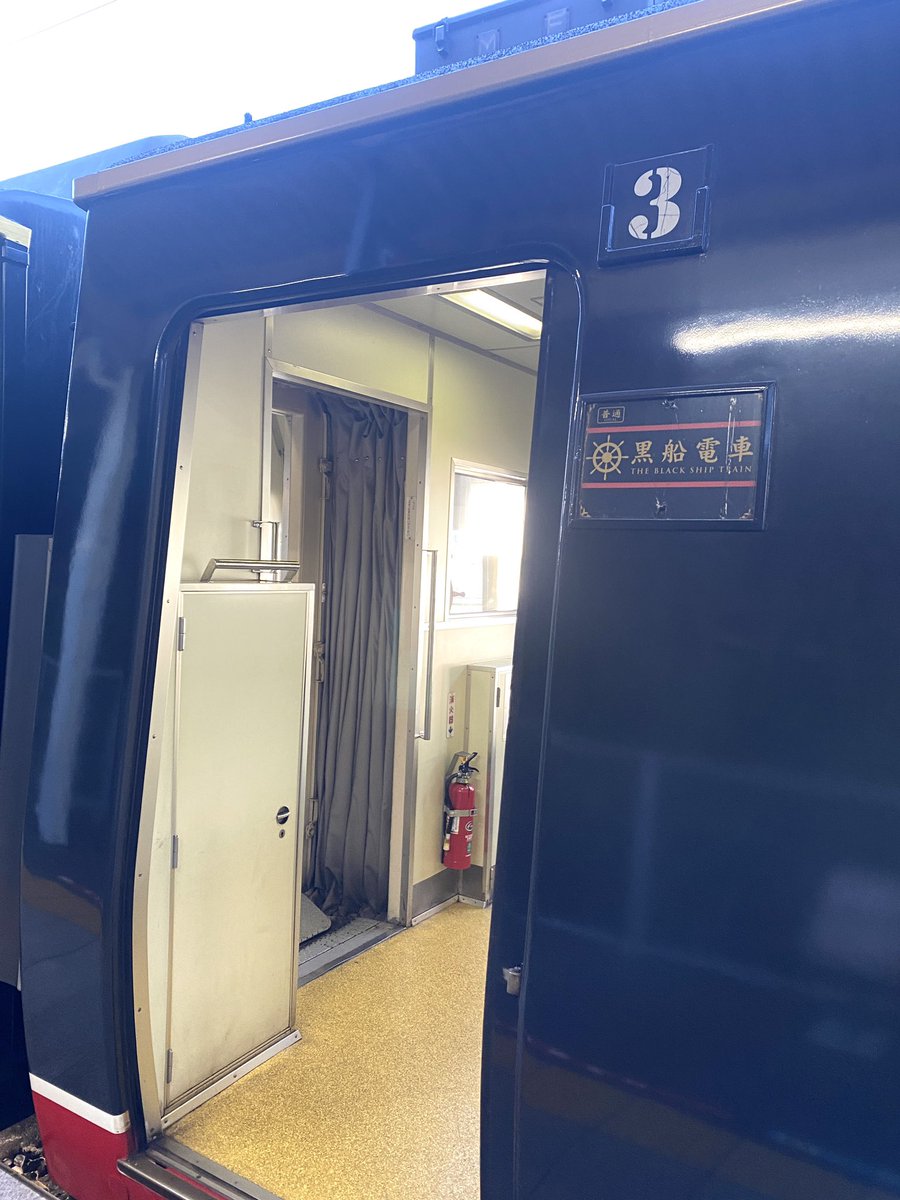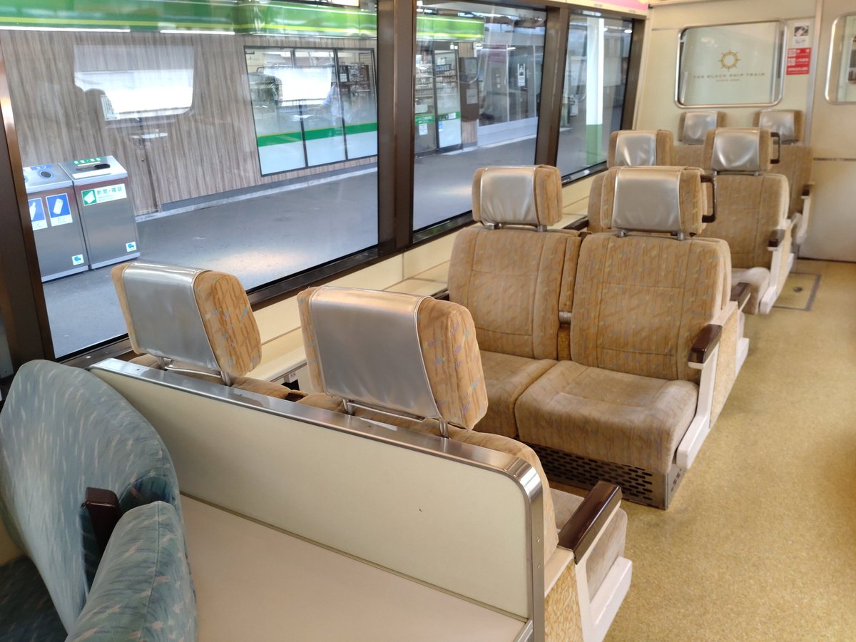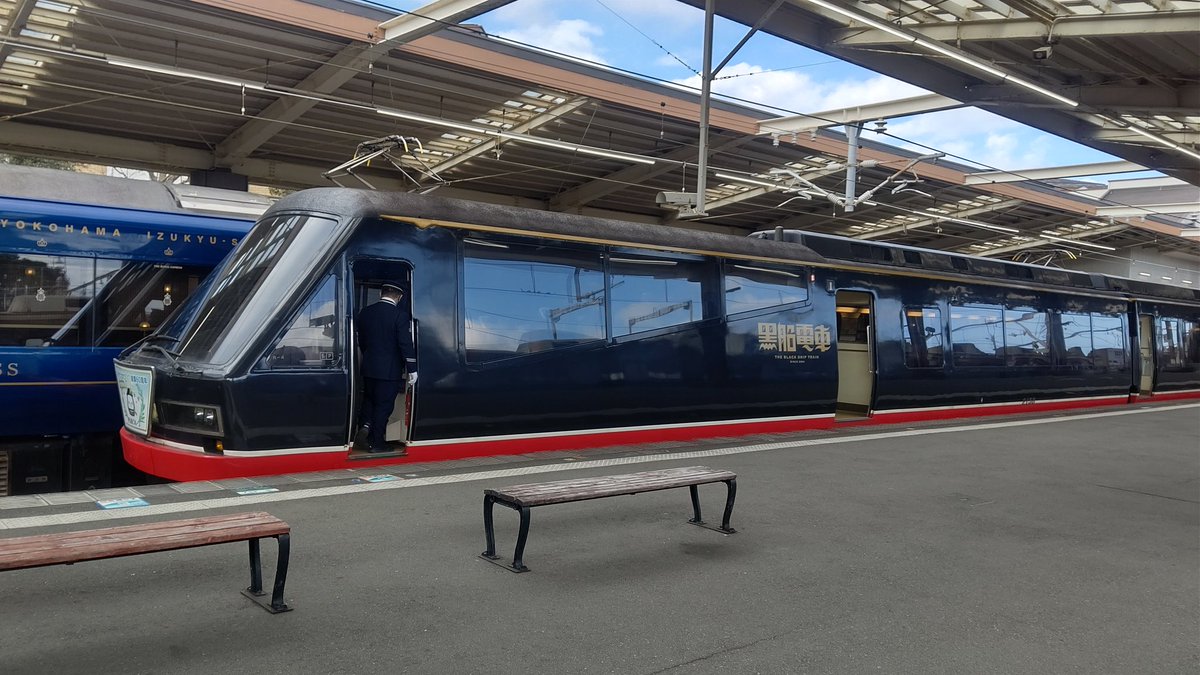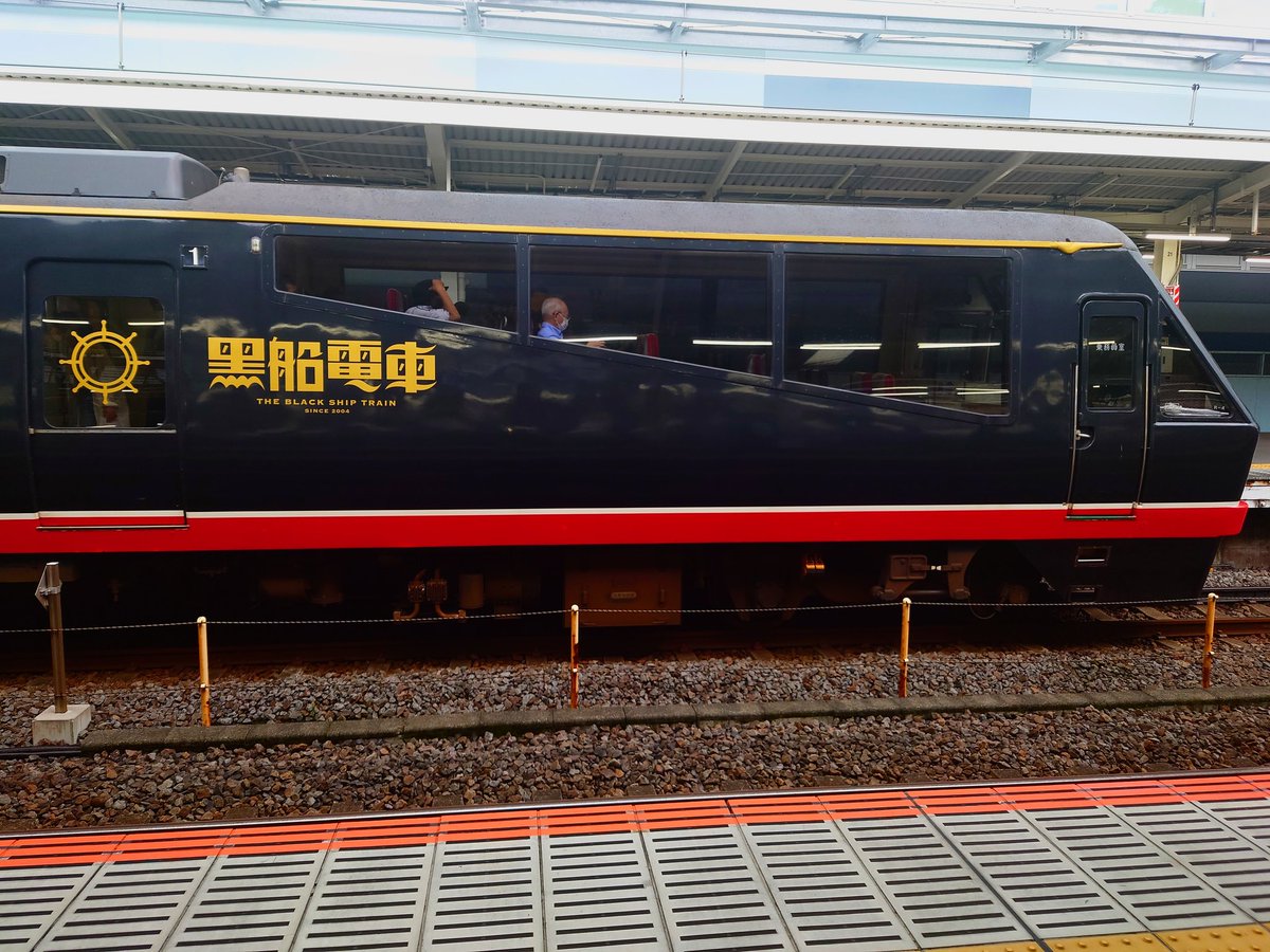 下田開港150周年を記念して運転が始まったリゾートトレインです。下田に来航した黒船に見立ててブラックに塗装した電車です。車内には黒船の来航など外国船が江戸湾や伊豆周辺に出没した幕末の歴史と下田の状況を紹介する史料なども展示され走るミュージアムにもなっています。 pic.twitter.com/mvtn57q9UB