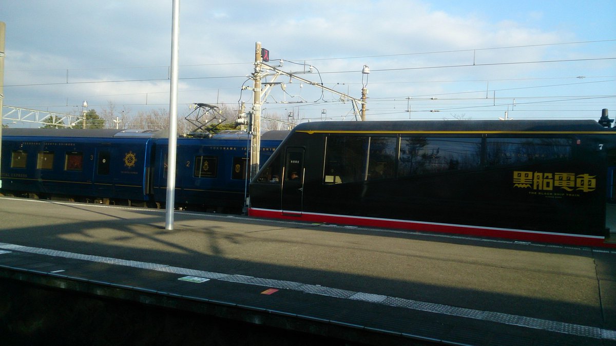 同じ2019年2月13日、伊豆高原駅にて。反対側のホームには黒船電車、その向こうにはTHE ROYAL EXPRESSが見えました。 pic.twitter.com/JN7bUjvUUX 2022-02-18 08:56:00