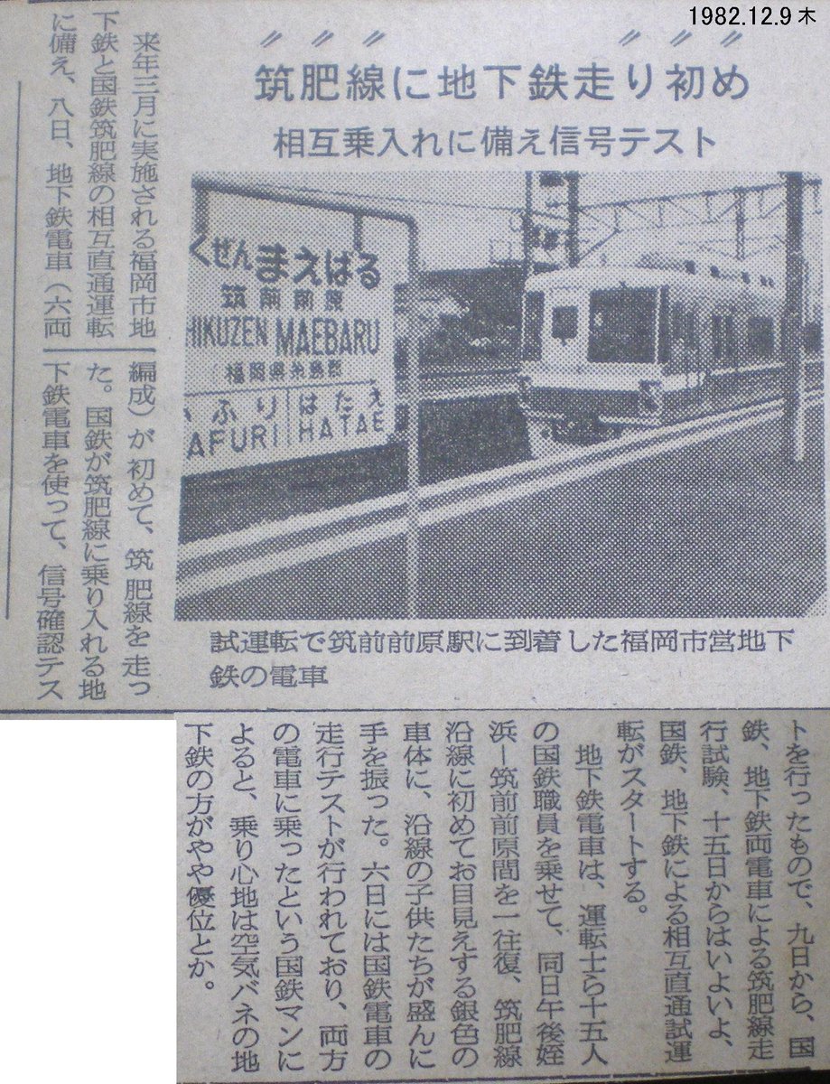 40年前の今日、1982年12月6日は103系1500番台が初めて筑肥線(西唐津⇔姪浜)を自走で試運転した日です。