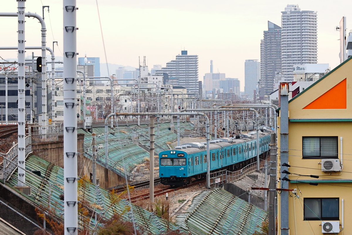 低運転台の記憶もあるものの、本格的に写真を撮り始めた頃には阪和線に転属した2本のみとなっていたため高運転台しか撮れていない森ノ宮の103系。組成やクーラーキセで遠目で編成番号を判別出来た時代が懐かしいです。今は全然思い出せません・・・ pic.twitter.com/w8UmFgsMkl